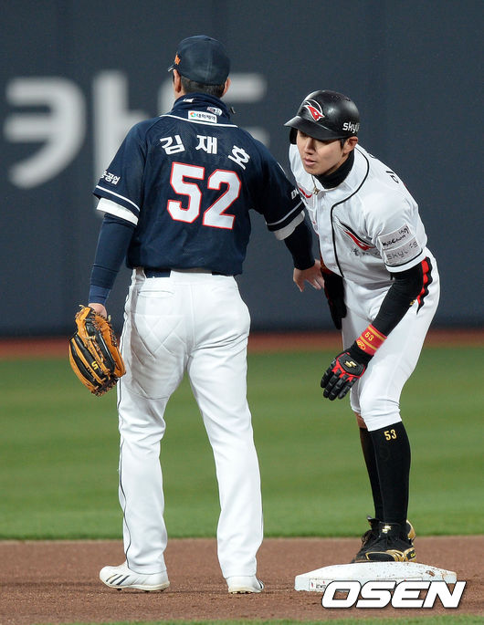 1회말 무사 1루에서 kt 김사연 타석때 1루주자 이대형이 도루에 성공하고 있다.