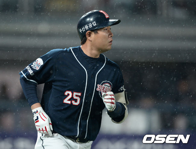 4회초 무사에서 두산 양의지가 중월 솔로 홈런을 치고 그라운드를 달리고 있다.