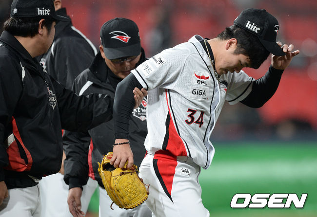 kt 위즈 좌완 투수 심재민이 왼쪽 다리에 타구를 맞고 교체됐다.