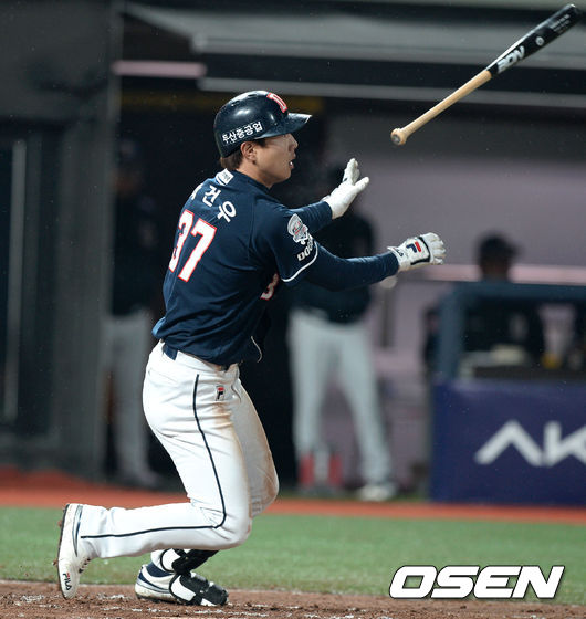 두산 베어스 외야수 박건우가 시즌 첫 홈런을 쏘아 올렸다.
