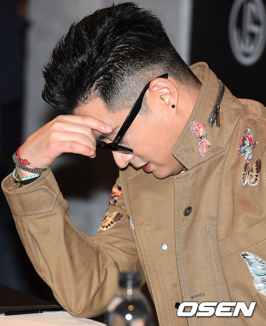 15일 오후 서울 중구 장충동 반얀트리 클럽 앤 스파 서울에서 진행된 '지누션 컴백' 기자회견에서 지누가 션의 재치 넘치는 답변에 고뇌하는 제스처를 취하고 있다.