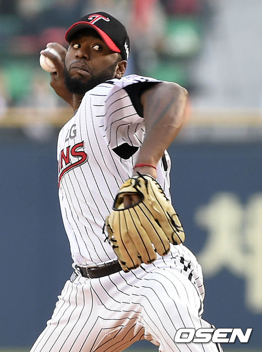 15일 오후 서울 잠실야구장에서 열린 '2015 타이어뱅크 KBO 리그' LG 트윈스와 KIA 타이거즈의 경기, 1회초 LG 선발투수 소사가 힘차게 공을 던지고 있다.
