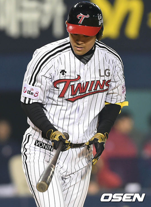 15일 오후 서울 잠실야구장에서 열린 '2015 타이어뱅크 KBO 리그' LG 트윈스와 KIA 타이거즈의 경기, 4회말 1사 주자 1,2루 LG 정의윤이 볼넷으로 출루하며 만루를 만들고 있다.