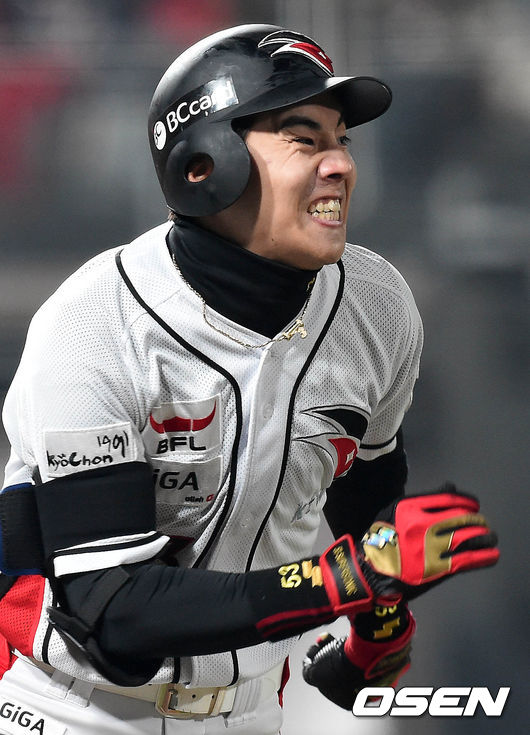 15일 오후 수원kt위즈파크에서 열린 '2015 타이어뱅크 KBO 리그' kt 위즈와 두산 베어스의 경기 4회말 1사 만루 이대형이 2루수앞 땅볼을 치고 달리고 있다. 이대형은 1루에서 세이프.