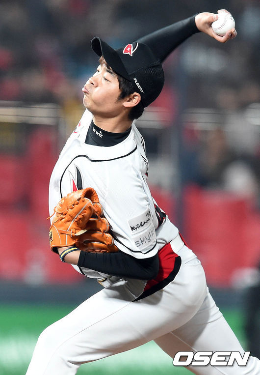 15일 오후 수원kt위즈파크에서 열린 '2015 타이어뱅크 KBO 리그' kt 위즈와 두산 베어스의 경기 6회초 2사 1루 이성민이 역투하고 있다.