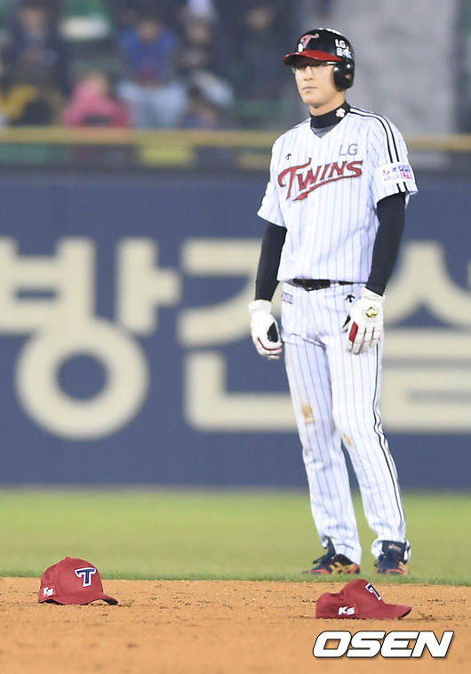 15일 오후 서울 잠실야구장에서 열린 '2015 타이어뱅크 KBO 리그' LG 트윈스와 KIA 타이거즈의 경기, 7회말 무사 주자 1루 LG 문선재의 2루 도루시도가 세이프로 판정되자 KIA 김기태 감독이 2루로 나와 항의하다 퇴장당하며 모자가 떨어져있다.