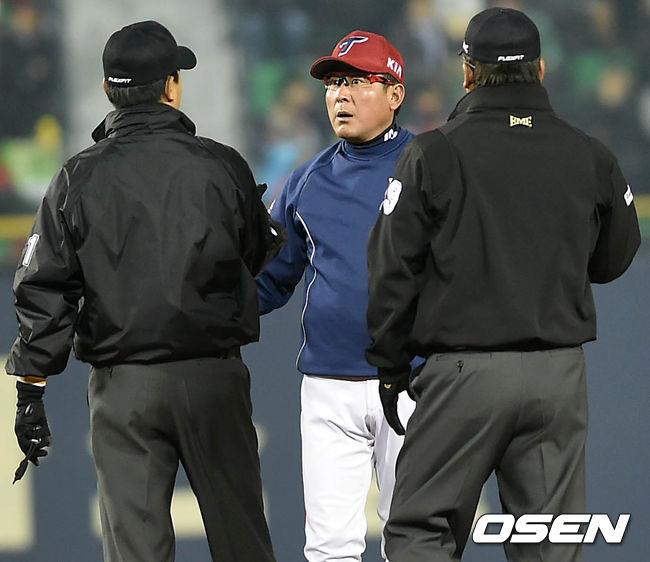 이로써 김 감독은 올 시즌 1호 감독 퇴장의 불명예를 쓰게 됐다. 김 감독은 6회말에도 LG 투수 장진용을 향해 투수코치가 마운드를 향하자, 투수 교체인지 투수 몸상태 점검인지 확실히해야 하는 게 아니냐고 항의했다.