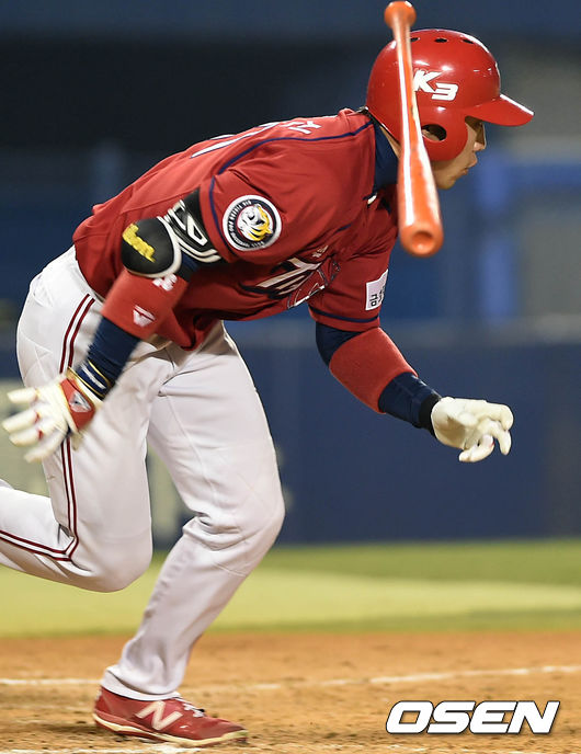 15일 오후 서울 잠실야구장에서 열린 '2015 타이어뱅크 KBO 리그' LG 트윈스와 KIA 타이거즈의 경기, 9회초 무사 주자 1,3루 KIA 이호신이 1타점 적시타를 치고 있다.