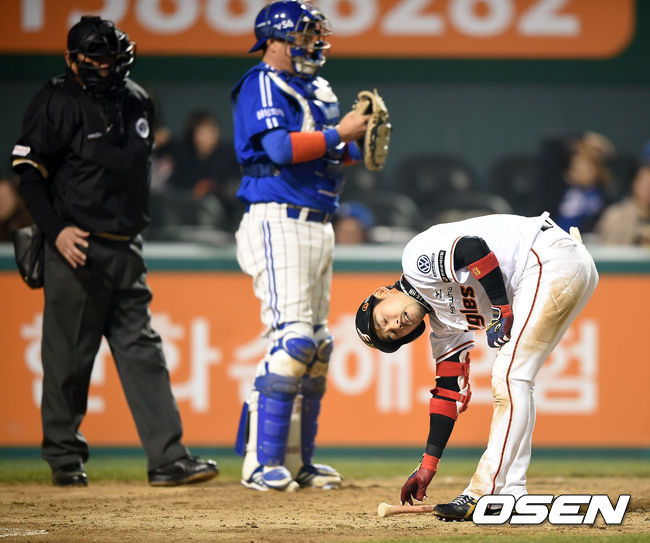 9회말 1사에서 한화 이용규가 삼진으로 물러나며 아쉬워하고 있다./jpnews@osen.co.kr