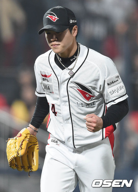 15일 오후 수원kt위즈파크에서 열린 '2015 타이어뱅크 KBO 리그' kt 위즈와 두산 베어스의 경기 11회초를 마친 심재민이 덕아웃으로 향하며 주먹을 쥐고 있다.