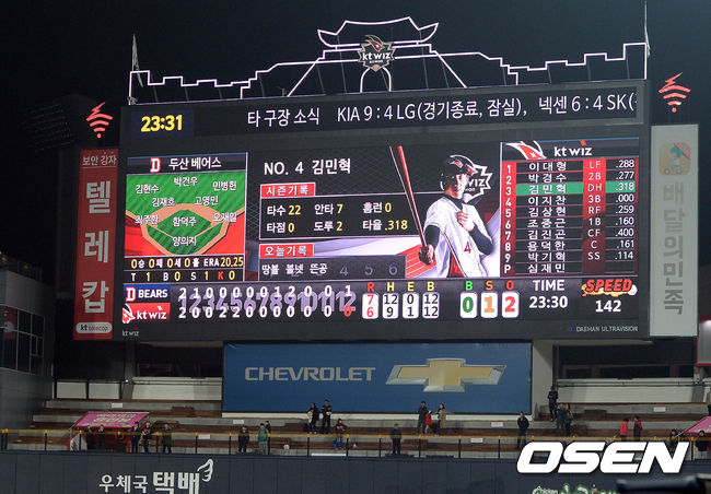 15일 오후 수원kt위즈파크에서 열린 '2015 타이어뱅크 KBO 리그' kt 위즈와 두산 베어스의 경기 12회말이 진행되고 있다.