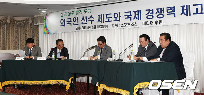‘외국인 선수 제도와 국제 경쟁력 제고’를 주제로 스포츠조선이 주최한 한국농구발전포럼이 15일 서울올림픽파크텔에서 개최됐다. 김동광 해설위원, 김태환 해설위원, 유재학 모비스 감독, 위성우 우리은행 감독이 패널로 참여해 열띤 토론을 펼쳤다.