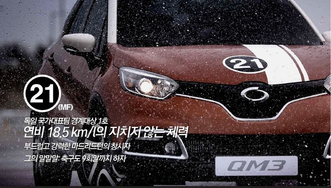 르노삼성은 공개된 영상에서 "세상의 모든 차들에게 QM3가 말합니다. 제대로 한판 붙어보자. 단, 1리터의 연료로" 라고 말하고, 'QM3'팀의 대표 주자들을 '지치지 않는 체력의 소유자' '빠른 발과 미친 드리블의 주인공' 등으로 의인화해 소개했다.