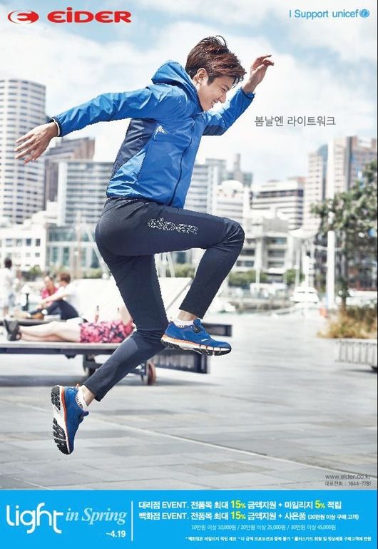 프랑스 아웃도어 브랜드 아이더(www.eider.co.kr)는 19일(일)까지 전국 대리점과 백화점 매장에서 구매 금액의 최대 15% 금액 지원을 제공하는 '라이트 인 스프링(Light in Spring)' 이벤트를 진행한다. 아이더는 이벤트 기간 동안 10만원 이상 구매 시 1만원, 20만원 이상 구매 시 2만 5000원, 30만원 이상 구매 시 4만 5000원의 금액을 지원한다. 특히 아이더 전국 대리점에서는 구매 금액의 5% 마일리지 적립 혜택을 추가로 제공하며 전국 백화점 매장에서는 20만원 이상 구매 시 사은품을 증정한다. 단, 이번 이벤트는 타 금액 프로모션과 중복 적용이 불가능하며 정상품에 한해 적용된다.