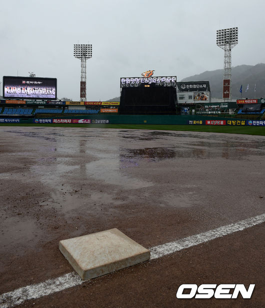 사진은 비내리는 한화생명 이글스파크 그라운드 모습.