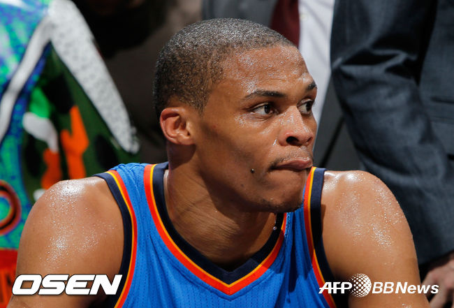 러셀 웨스트브룩(27, 오클라호마시티 썬더)이 플레이오프 탈락에 좌절을 금치 못했다.