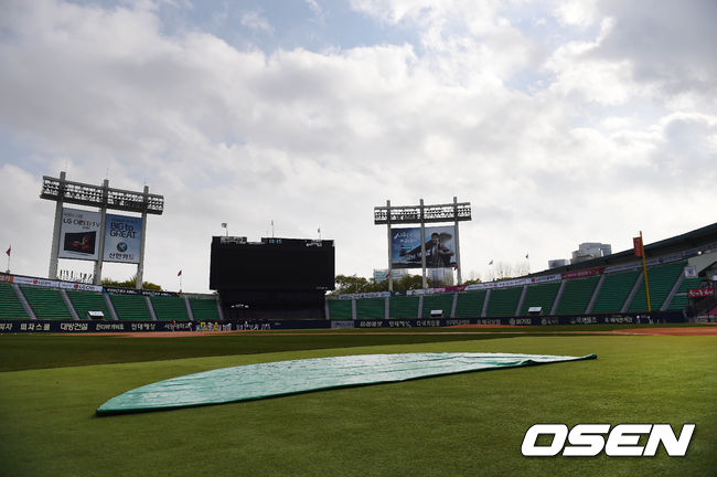 16일 오후 서울 잠실구장에서 열리는 '2015 타이어뱅크 KBO 리그' LG 트윈스와 KIA 타이거즈의 경기 시작전 비가 내리던 잠실구장 하늘에 햇빛이 들고 있다.