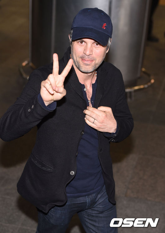 배우 마크 러팔로가 공항을 나서고 있다.