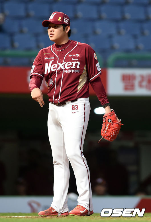 2회말 넥센 한현희가 SK 이명기에게 몸에 맞는 볼을 허용한 뒤 구심에게 어필하고 있다. / youngrae@osen.co.kr