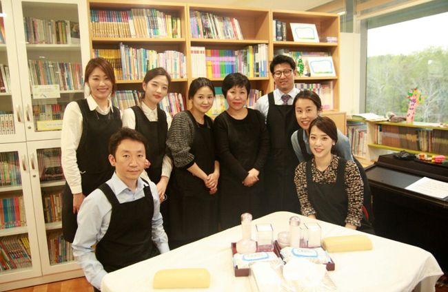 한국 시세이도가 지난 14일 서울삼성병원 소아암 병동 내 병원학교에서 환아 가족들을 위한 핸드마사지 봉사활동을 진행했다.
