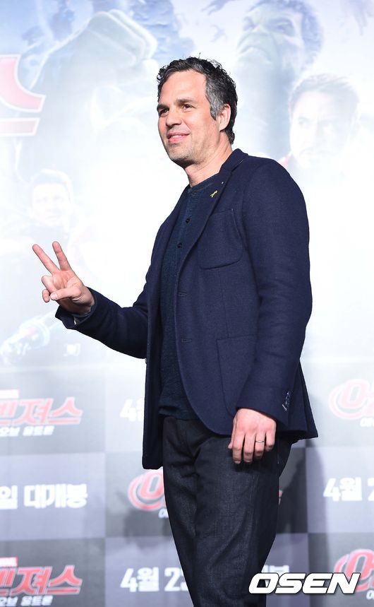할리우드 배우 마크 러팔로가 17일 오전 서울 여의도 콘래드호텔에서 진행된 영화 '어벤져스: 에이지 오브 울트론'(이하 '어벤져스2')' 공식 기자회견에 참석해 포토타임을 갖고 있다.