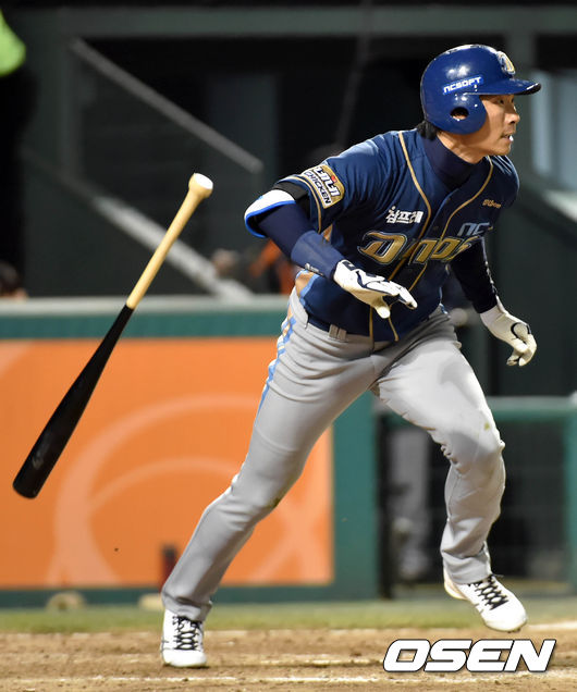 17일 대전 한화생명이글스파크에서 열린 2015 타이어뱅크 KBO리그 한화 이글스와 NC 다이노스의 경기 5회초 무사 1루 김종호가 중전 안타를 치고 있다.