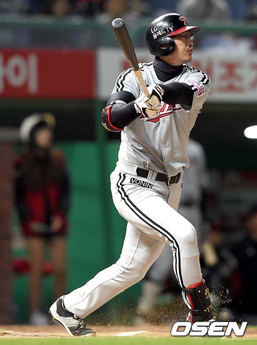 6회초 LG 공격 선두타자로 나선 박용택이 중월 솔로포를 날리고 있다.