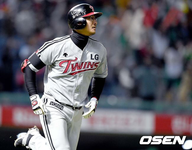 6회초 LG 공격 선두타자로 나선 박용택이 중월 솔로포를 날리고 그라운드를 돌고 있다.