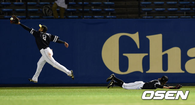 7회말 무사에서 소프트뱅크 마키하라가 지바롯데 타무라의 타구를 놓치고 있다.