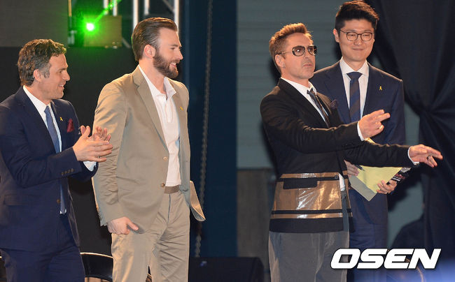 17일 오후 서울 대치동 서울무역전시장(SETEC)에서 열린 영화 '어벤져스2' 레드카펫 행사에서 로버트 다우니 주니어가 팬들에게 인사를 하고 있다.