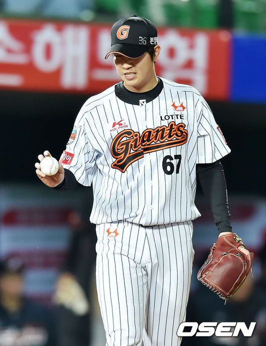 롯데 자이언츠 사이드암 불펜투수 김성배(34)는 위기에 강하다. 현재 9경기에 출전, 6이닝을 소화하며 3홀드 평균자책점 6.00을 기록 중이다. 평균자책점에 가려진 김성배의 진가는 바로 '위기에 강한 투수'라는 점이다.