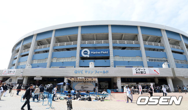 18일 오후 일본 지바현 QVC 마린필드에서 열릴 2015 일본프로야구 지바롯데와 소프트뱅크 호크스의 경기에 앞서 야구장을 찾은 야구팬들이 입장을 기다리고 있다.