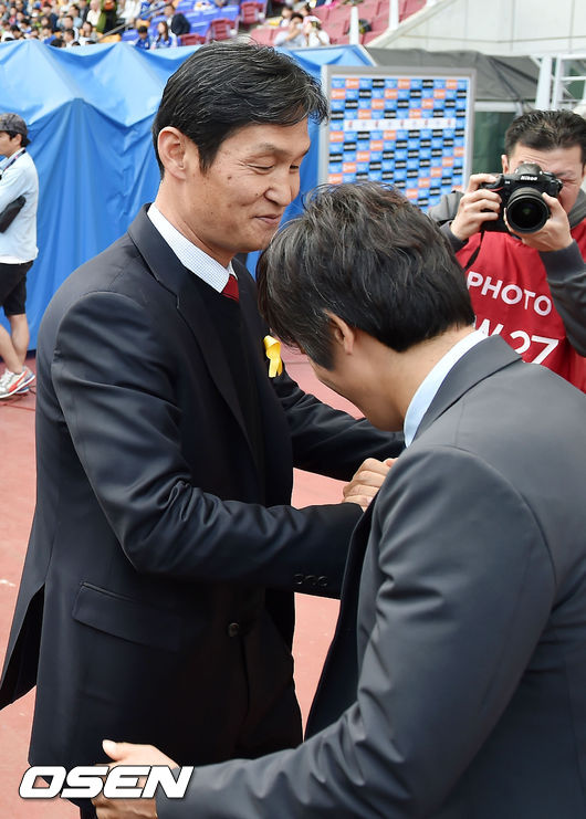 경기전 서울 최용수 감독과 수원 서정원 감독이 악수를 나누고 있다.