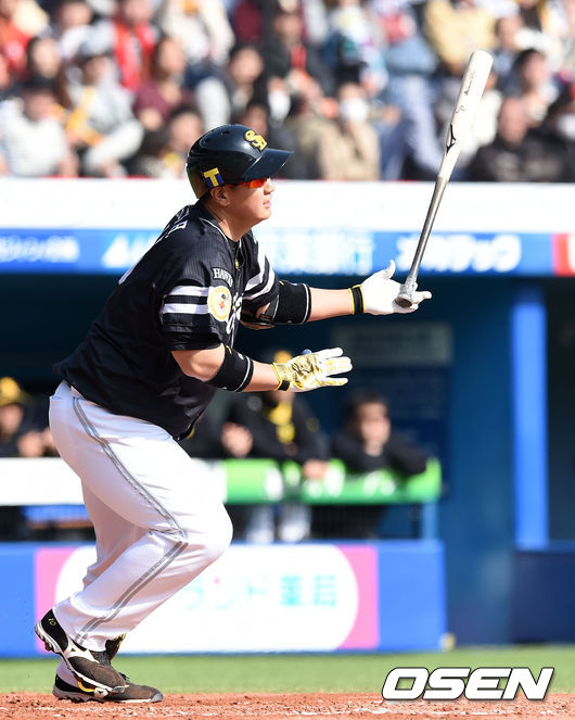4회초 무사에서 소프트뱅크 이대호가 외야플라이로 물러나고 있다.