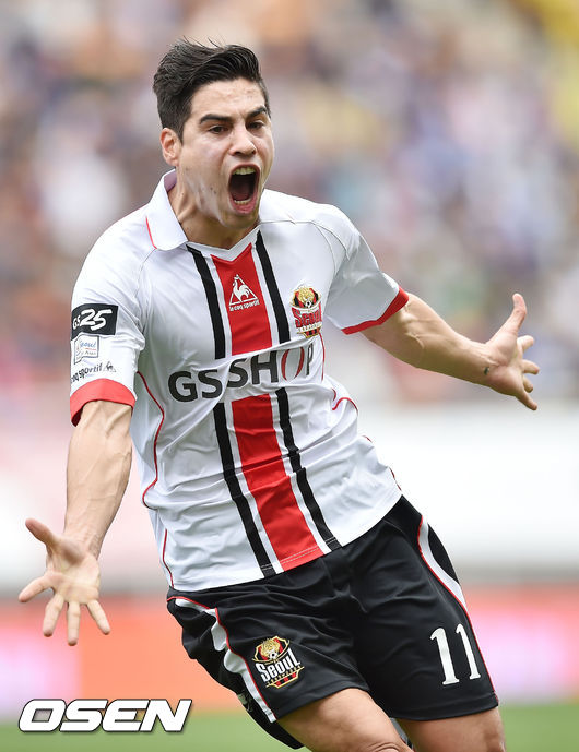 전반 서울 몰리나가 프리킥으로 동점골을 성공시킨 후 기뻐하고 있다.