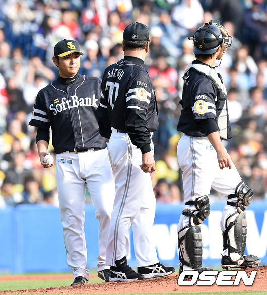 6회말 2사 1루에서 소프트뱅크 셋쓰가 마운드를 내려가고 있다.