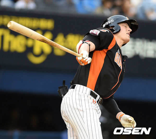 3회초 무사 1루에서 롯데 아두치가 삼진으로 물러나고 있다.