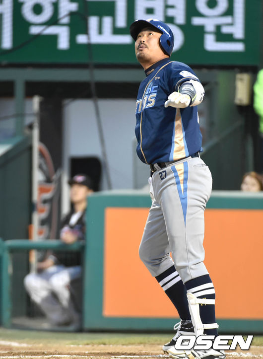18일 대전 한화생명이글스파크에서 열린 2015 타이어뱅크 KBO리그 한화 이글스와 NC 다이노스의 경기 6회초 무사 3루 이호준이 투런 홈런을 치고 있다.