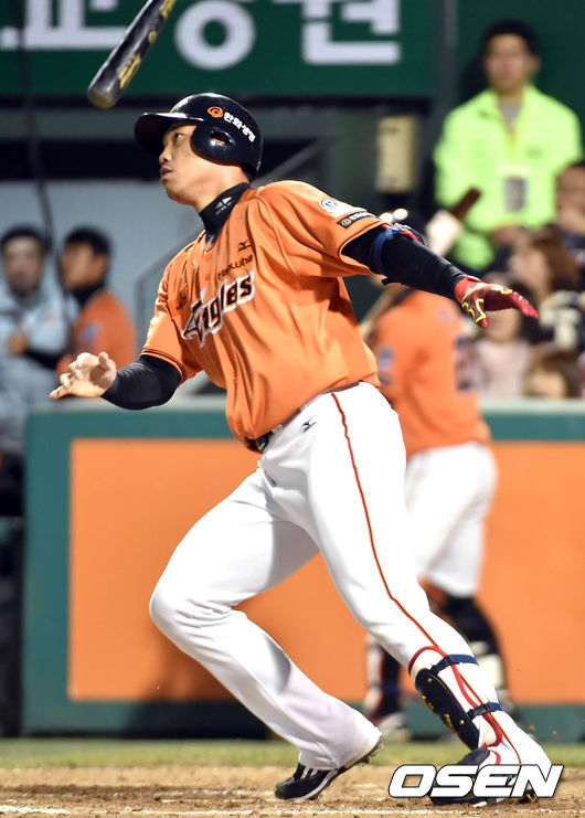 18일 대전 한화생명이글스파크에서 열린 2015 타이어뱅크 KBO리그 한화 이글스와 NC 다이노스의 경기 7회말 2사 2루 최진행이 역전 투런 홈런을 치고 있다.