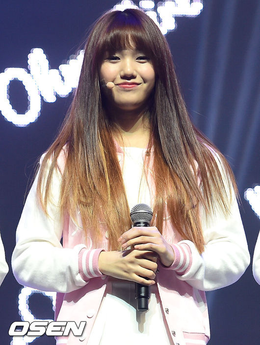 오 마이 걸 미미가 미소짓고 있다.