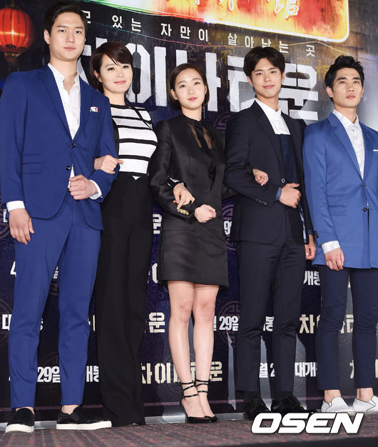20일 오후 서울 행당동 왕십리 CGV에서 진행된 영화 '차이나타운' 언론시사회에서 출연배우들이 포즈를 취하고 있다