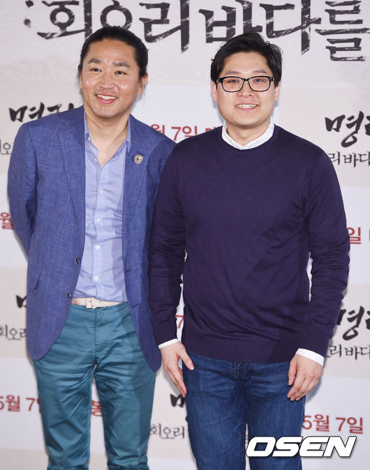 20일 오후 서울 왕십리CGV에서 진행된 '명량: 회오리 바다를 향하여' 언론시사회에서 정세교 감독과 김한민 감독이 포즈를 취하고 있다,