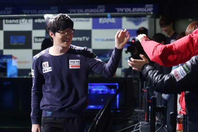 KT는 20일 서울 서초 강남 넥슨 아레나에서 열린 'SK텔레콤 스타크래프트2 프로리그 2015' 2라운드 SK텔레콤과 준플레이오프경기서 첫번째 주자 이영호가 무너졌지만 두번째 주자로 나선 김대엽이 내리 4명을 꺾는 괴력을 발휘하면서 4-1로 승리, 진에어와 플레이어프전을 성사시켰다.