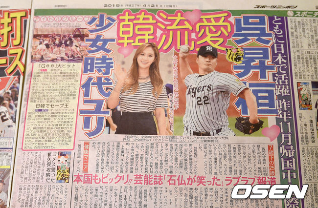 21일 일본의 주요 스포츠전문지들은 한신의 오승환(33)과 걸그룹 소녀시대 유리(26)의 열애 기사를 비중 있게 다뤘다.