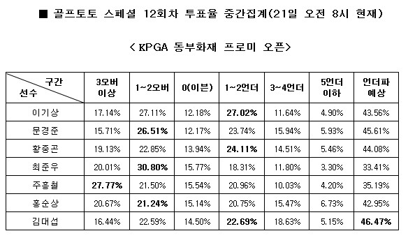 KPGA 동부 프로미 오픈 1라운드 대상 스페셜 12회차 중간집계 결과