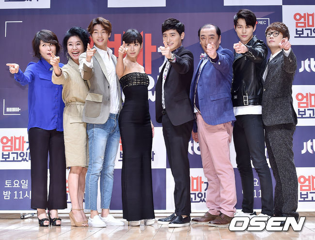 21일 오후 서울 상암동 JTBC 사옥 디지털 공연장에서 JTBC 새 예능 프로그램 ‘엄마가 보고있다’의 제작발표회가 열렸다. 황석정 김부선 강민혁 이본 원기준 염동헌 신지훈 김강현이 포토타임을 갖고 있다.