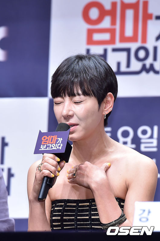 21일 오후 서울 상암동 JTBC 사옥 디지털 공연장에서 JTBC 새 예능 프로그램 ‘엄마가 보고있다’의 제작발표회가 열렸다. 이본이 질문에 답을 하며 눈물을 흘리고 있다.
