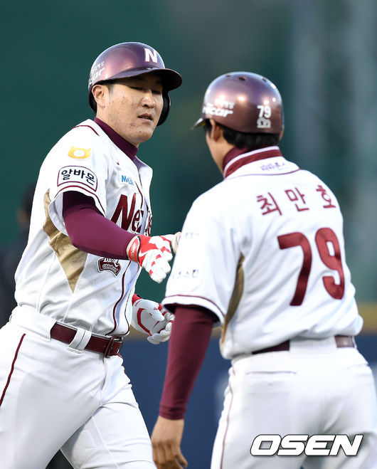 1회말 2사 1,2루 넥센 유한준이 스리런 홈런을 떄린 뒤 베이스를 돌고 있다.