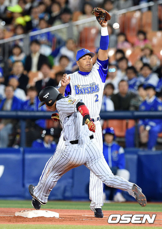4회초 2사 1,3루에서 한신 니시오카가 땅볼을 쳤으나 요코하마의 실책으로 세이프 되고 있다.