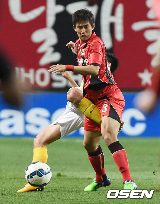 21일 오후 서울월드컵경기장에서 열린 2015 아시아축구연맹 챔피언스리그 H조 조별리그 FC 서울과 광저우 에버그란데의 경기 전반 이웅희가 볼다툼을 하고 있다.